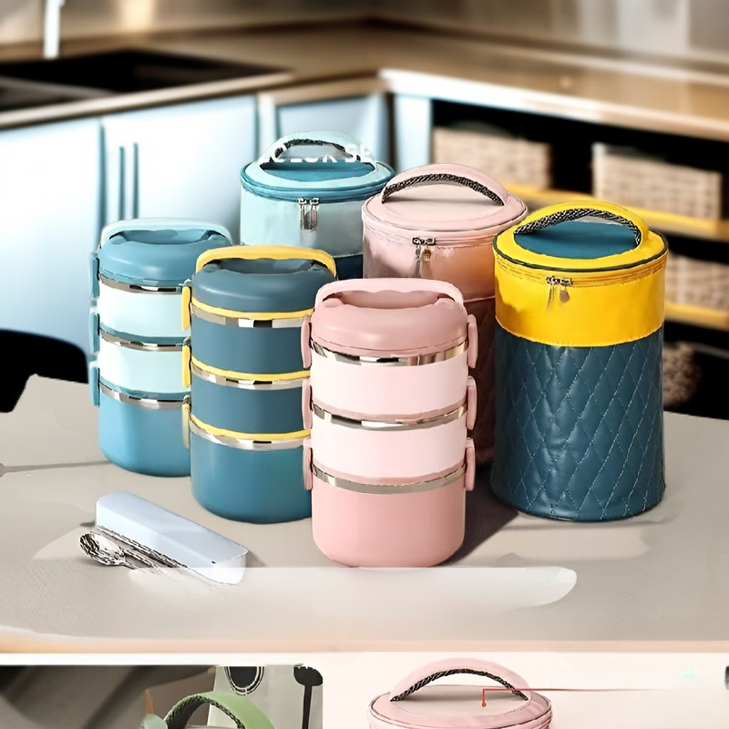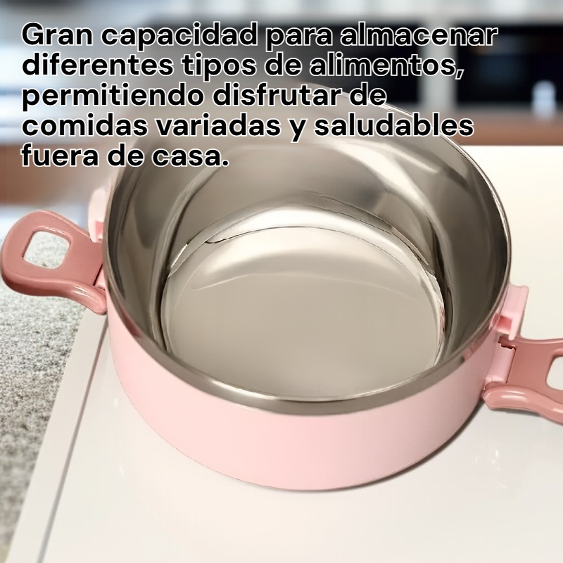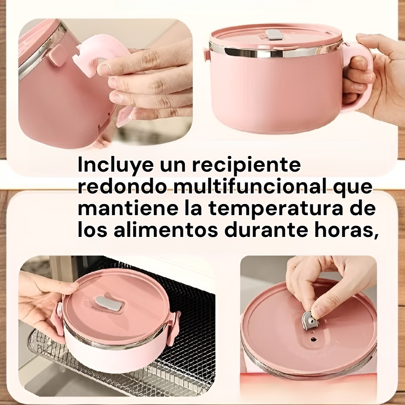 ● Incluye un recipiente redondo multifuncional que mantiene la temperatura de los alimentos durante horas, asegurando que tu comida esté siempre fresca y caliente.