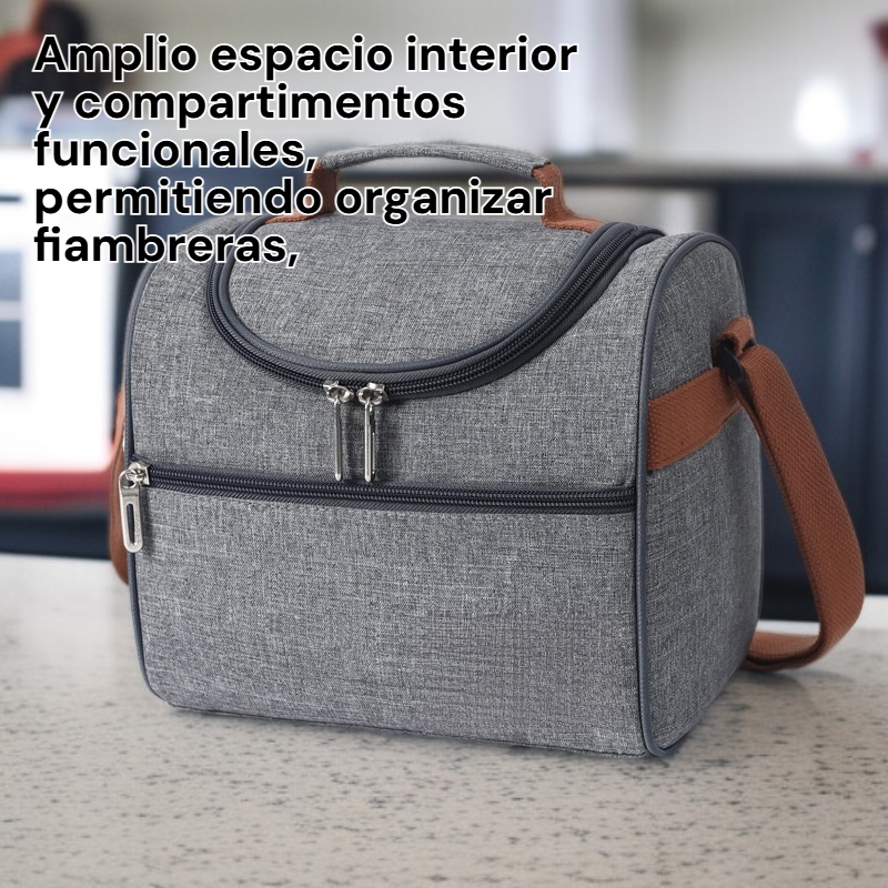 ● Amplio espacio interior y compartimentos funcionales, permitiendo organizar fiambreras, frutas y bebidas de manera cómoda y ordenada.
